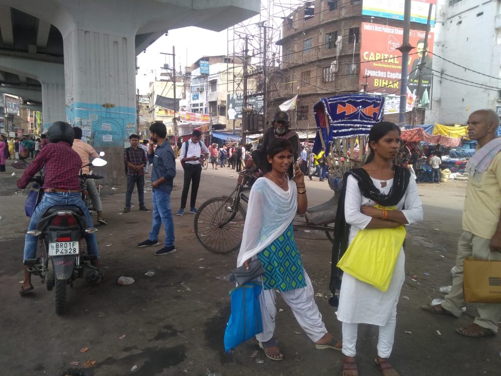 पटना सिटी से हनुमान मंदिर दर्शन करने आई सरिता देवी अपने तीन बच्चों के साथ रोड पर बस को रुकने का इशारा कर रही हैं लेकिन बस आगे बढ़ जाती हैं. सरिता देवी बताती हैं