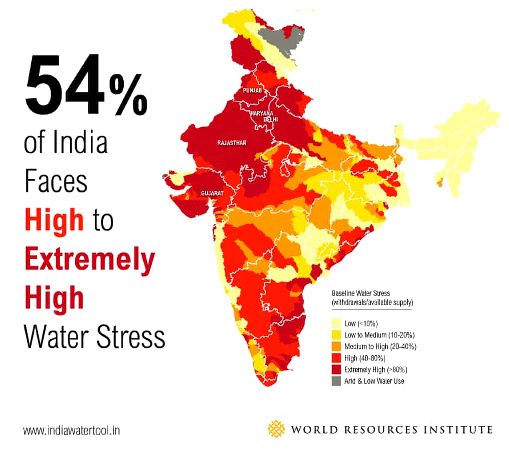 भारत में साल 2025 तक प्रति व्यक्ति पानी की उपलब्धता 1341 क्यूबिक मीटर/साल(Cu m/Yr) हो जाने की सम्भावना है जो साल 2050 तक 1140 क्यूबिक मीटर/साल(Cu m/Yr) ही रह जाएगी.