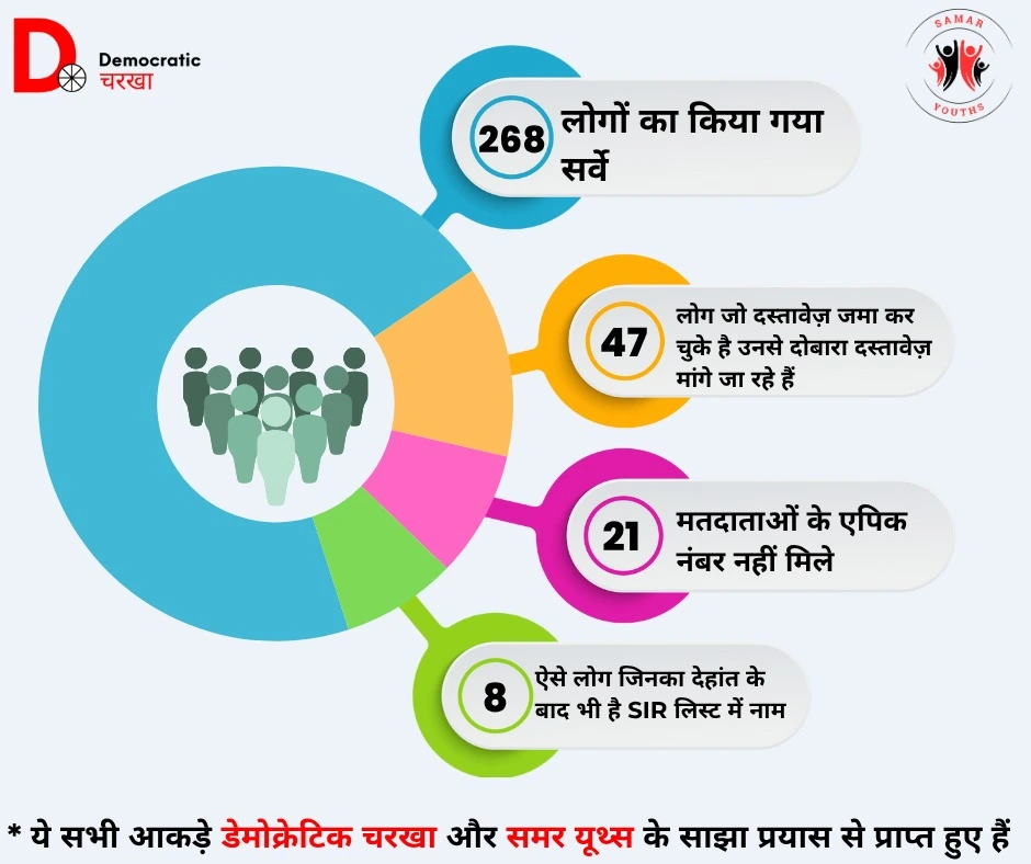 - 47 लोग ऐसे हैं जिन्होंने अपने दस्तावेज़ पहले ही BLO को जमा कर दिए थे। फिर भी उनसे दोबारा वही दस्तावेज़ मांगे जा रहे हैं।