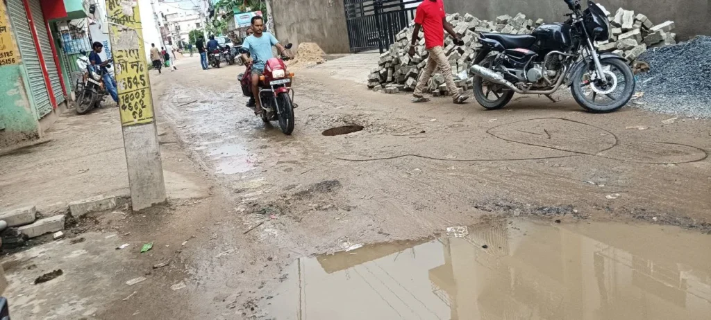 न्यू आदर्श विहार के वार्ड संख्या 30 के रहने वाले धर्मेंद्र जी बताते हैं “यहां पिछले 2 सालों से मैनहोल खुला है. जिसके वजह से आए दिन एक्सीडेंट और दुर्घटना होती रहती है. जब बारिश का मौसम आता है तो पानी भर जाता है. जिसकी वजह से समस्या बढ़ जाती है.”