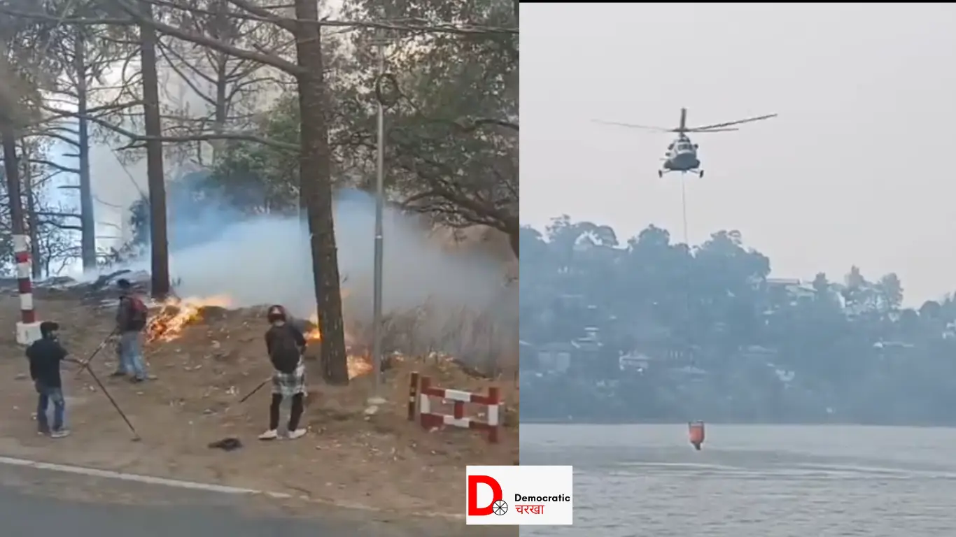 विकराल हो चुकी आग पर काबू पाने के लिए एयरफोर्स के हेलिकॉप्टर को आग बुझाने के लिए लगाया गया है. शुक्रवार 26 अप्रैल को एयरफोर्स के MI-17 हेलिकॉप्टर ने भीमताल झील से पानी भरकर पैंसठ क्षेत्र में आग बुझाई. आग से उठ रहे धुएं में आसपास के लोगों को सांस लेने में दिक्कत हो रही है. वहीं सड़कों पर आवागमन भी बाधित हो गया है.