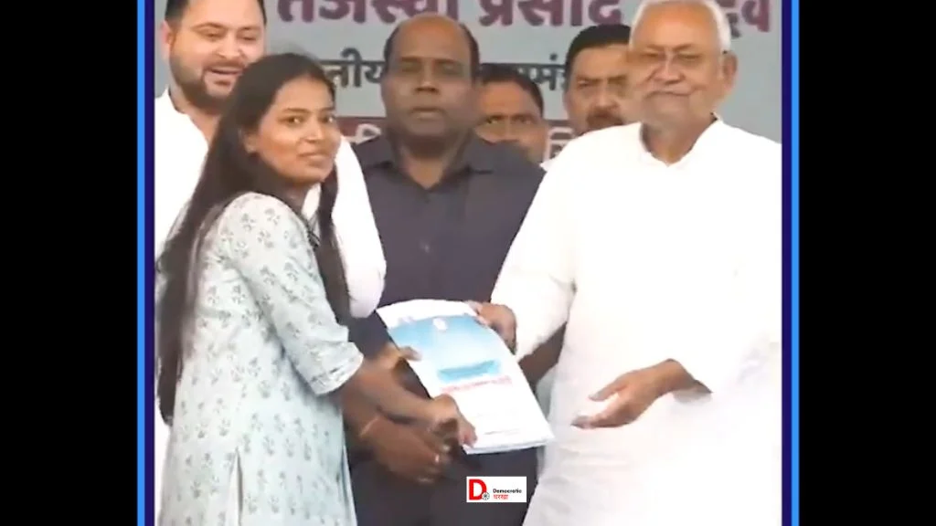पटना के गांधी मैदान में मुख्यमंत्री नीतीश कुमार और उपमुख्यमंत्री तेजस्वी यादव ने आज शिक्षकों के बीच नियुक्ति पत्र का वितरण किया.