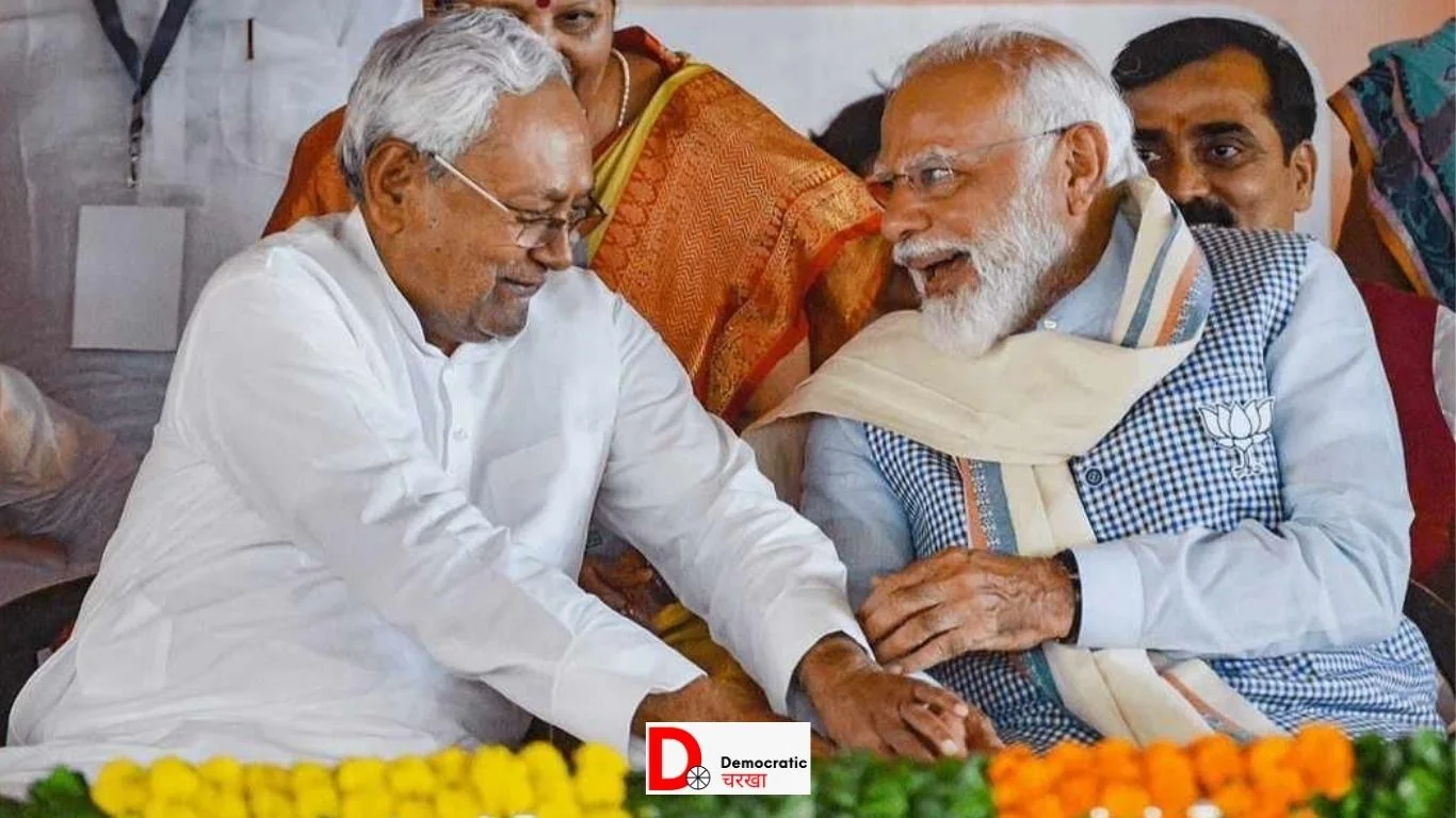 लोकसभा चुनाव 2024 में बिहार को साधने के लिए पीएम नरेंद्र मोदी तीन दिनों में दूसरी बार बिहार दौरे पर पहुंचे. बिहार के नवादा जिले में 10 सालों के बाद पीएम मोदी ने जनसभा को संबोधित किया और अपने उम्मीदवार के लिए वोट मांगे. इस बार 400 पर का नारा लगाते हुए पीएम मोदी ने नवादा से विपक्षी दलों के खिलाफ हुंकार भी भरी. नवादा में पीएम मोदी की रैली भाषण तो सुर्खियां बटोर ही रहा हैं, इसके अलावा सीएम नीतीश कुमार भी नवादा जनसभा से सुर्खियों में आ गए हैं. चुनावी सभा के दौरान सीएम नीतीश कुमार पीएम मोदी के पैर छूते हुए नजर आ रहे हैं.