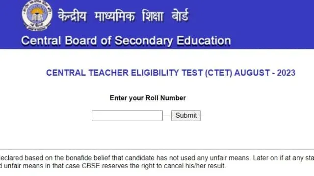 केंद्रीय माध्यमिक शिक्षा बोर्ड (CBSE) ने केंद्रीय शिक्षक पात्रता परीक्षा (CTET) अगस्त 2023 का रिजल्ट जारी कर दिया है.