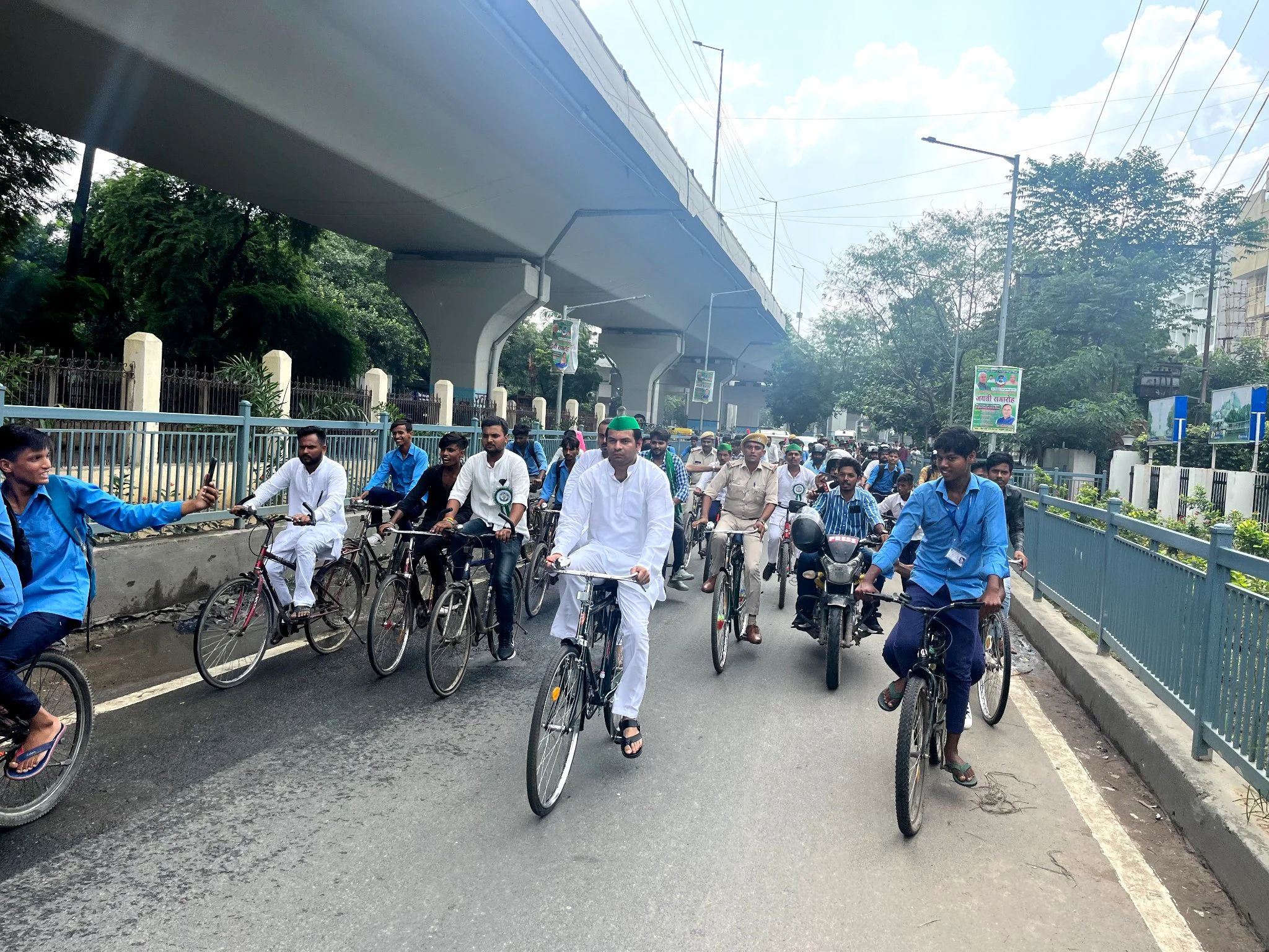 तेज प्रताप, राबड़ी देवी के आवास से साइकिल पर सवार होकर अपने पार्टी के कार्यकर्ताओं के साथ यात्रा पर निकले. जो जननायक जय प्रकाश नारायण के घर तक चली.