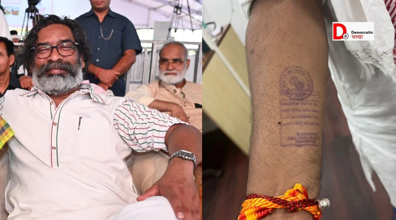 हेमंत सोरेन ने जेल में हाथ पर लगी मुहर को भी साझा किया और जेल के अनुभवों को भी लिखा- वह है यह कैदी का निशान – जो जेल से रिहा होते वक्त मुझे लगाया गया.