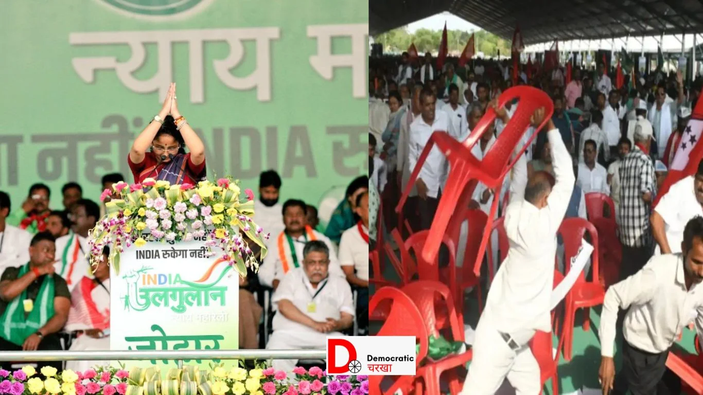 लेकिन इसी रैली में एक ही ब्लॉक में शामिल राजद और कांग्रेस कार्यकर्त्ता एक- दूसरे से भीड़ गए. I.N.D.I.A ब्लॉक में ही शामिल राजद-कांग्रेस कार्यकर्ताओं के बीच रैली के दौरान जमकर कुर्सियां चली, इस दौरान के केएन त्रिपाठी के विरोध में नारे भी लगे. कहा जा रहा है कि चतरा लोकसभा सीट से कांग्रेस के उम्मीदवार बनाए जाने पर राजद और कांग्रेस प्रत्याशियों के बीच में बकझक हो गई और बात मारपीट तक पहुंच गई. कुर्सी फेंकने का वीडियो सोशल मीडिया पर वायरल हो रहा है, जिसमें देखा जा सकता है कि कैसे हवा में कुर्सियां फेंकी जा रही है. वहीं एक शख्स के सर से खून भी निकल रहा है.