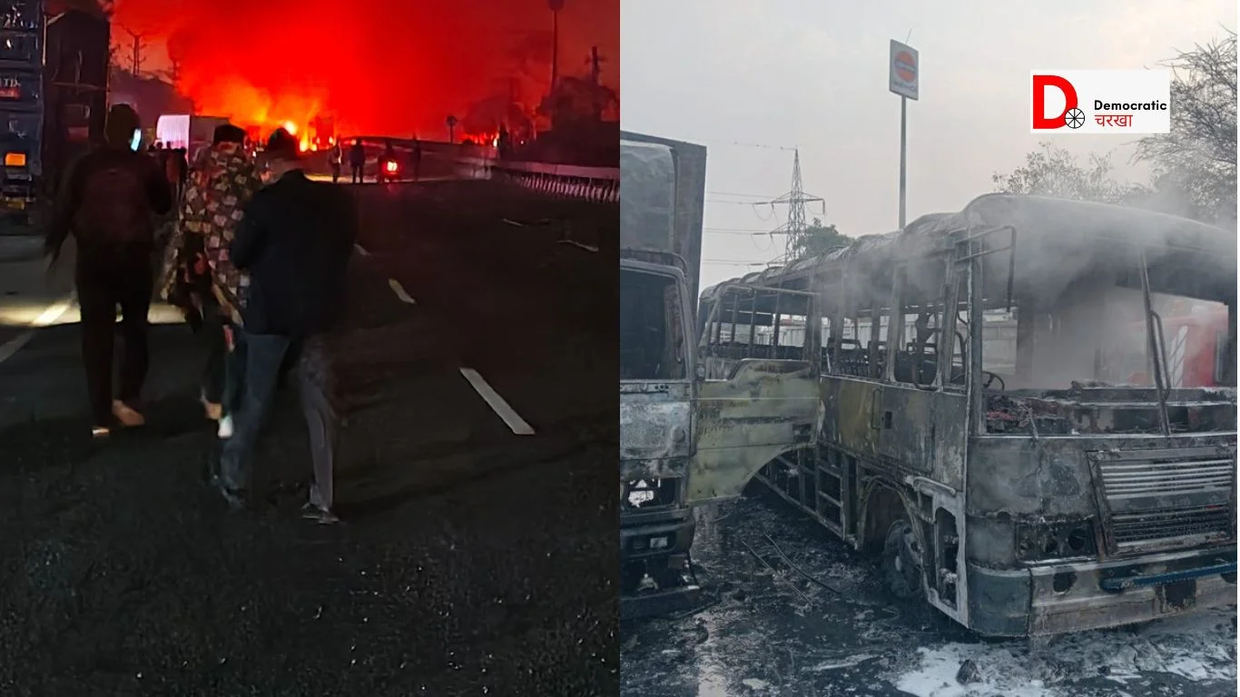 यह हादसा आज सुबह 5:45 बजे घटित हुआ. एलपीजी गैस टैंकर ने एक ट्रक में टक्कर मार दी, जिससे टैंकर से गैस का रिसाव होने लगा. गैस 200 मीटर तक फैल गई, जिसमें अचानक आग लग गई. धीरे-धीरे आग 1 किलोमीटर तक फैल गई. आग ने एक स्लीपर बस सहित ट्रक, बाइक और कई कारों को अपनी चपेट में ले लिया. हालांकि पास में ही एक पेट्रोल पंप भी मौजूद था. गनीमत रही कि आग की लपटे वहां तक नहीं पहुंची वरना और बड़ा हादसा हो सकता था.