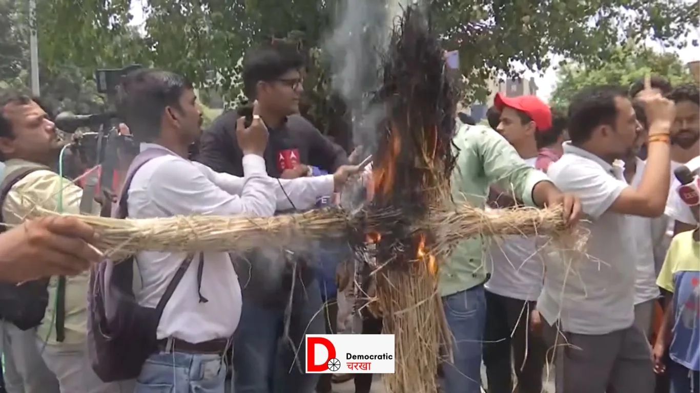 नीट यूजी परीक्षा-2024 में धांधली का मामला तूल पकड़ रहा है. सुप्रीम कोर्ट के फैसले के बाद भी नीट के छात्र परीक्षा को रद्द करने की मांग लगातार कर रहे हैं. इसी कड़ी में नीट परीक्षा के खिलाफ शनिवार को पटना में भी प्रदर्शन देखने को मिला. परीक्षा रद्द करने की मांग को लेकर नीट परीक्षार्थियों ने पटना के दिनकर गोलंबर पर जमकर प्रदर्शन किया. छात्रों और परिजनों ने सड़क पर आगजनी करते हुए ट्रैफिक व्यवस्था को रोक दिया और सरकार के खिलाफ खूब नारेबाजी की. इस दौरान शिक्षा मंत्री का भी पुतला प्रदर्शनकारियों ने फूंका.