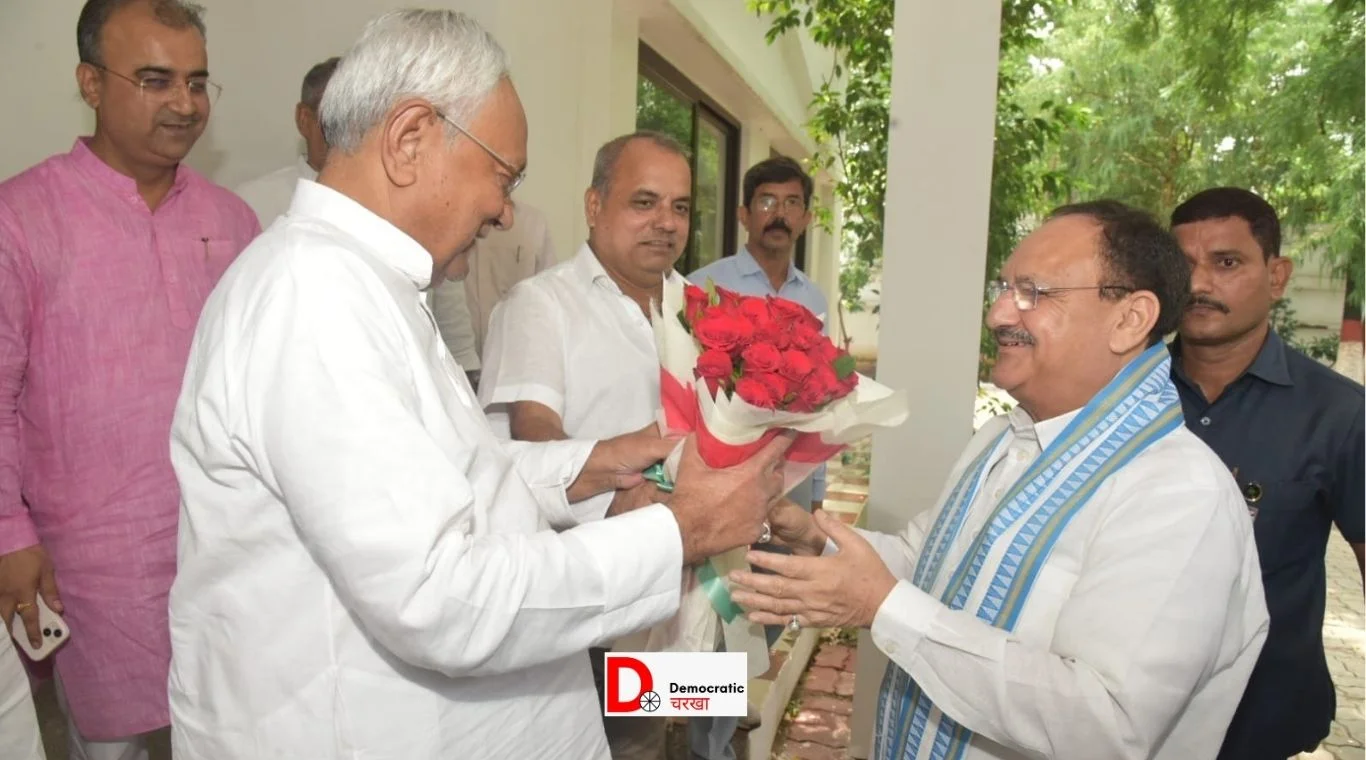 केंद्रीय स्वास्थ्य एवं परिवार कल्याण मंत्री जेपी नड्डा बिहार दौरे पर पहुंचे हैं. आज केंद्रीय मंत्री के द्वारा बिहार में कई अस्पतालों का उद्घाटन होने जा रहा है. जेपी नड्डा के पटना पहुंचने पर भाजपा कार्यकर्ताओं द्वारा उनका भव्य स्वागत किया गया. जिसके बाद जेपी नड्डा नीतीश कुमार से मुलाकात करने पहुंचे. इस दौरान दोनों के बीच करीब एक घंटे तक बातचीत हुई. भाजपा कोटे के दोनों उपमुख्यमंत्री विजय कुमार सिन्हा और सम्राट चौधरी, भाजपा प्रदेश अध्यक्ष डॉ दिलीप जायसवाल, चिकित्सा एवं कृषि मंत्री मंगल पांडे इस दौरान मौजूद रहे.