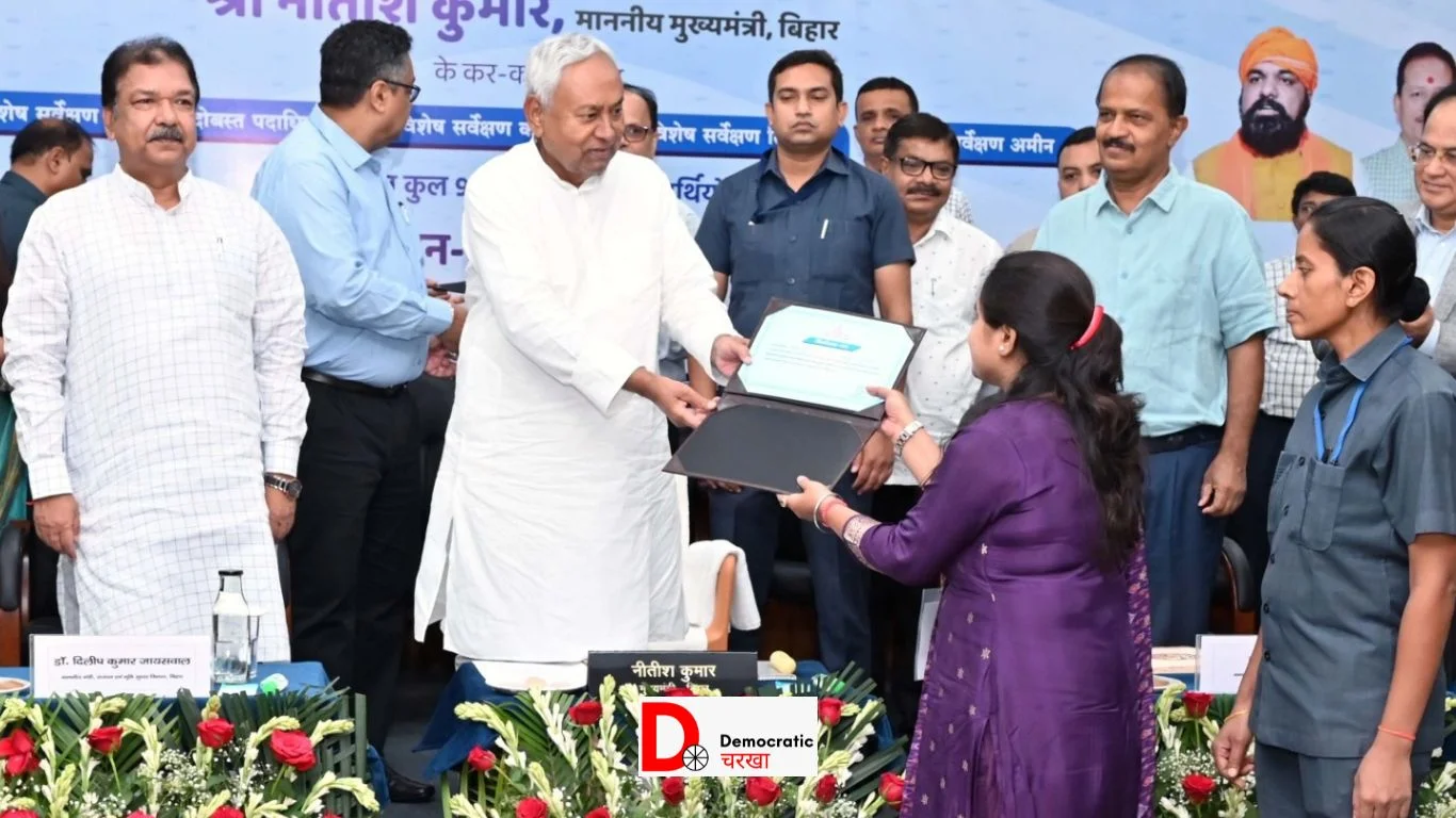 बिहार सीएम नीतीश कुमार ने आज साढ़े 9 हजार से ज्यादा अभ्यर्थियों को एक कार्यक्रम में नियुक्ति पत्र बांटा. बुधवार को मुख्यमंत्री सचिवालय स्थित ‘संवाद” में राजस्व एवं भूमि सुधार विभाग के अंतर्गत 9888 अभ्यर्थियों को सीएम ने नियुक्ति पत्र दिया. जिनमें से 353 विशेष सर्वेक्षण सहायक बंदोबस्त पदाधिकारी, 758 विशेष सर्वेक्षण कानूनगो, 742 विशेष सर्वेक्षण लिपिक और 8035 विशेष सर्वेक्षण अमीन शामिल है.