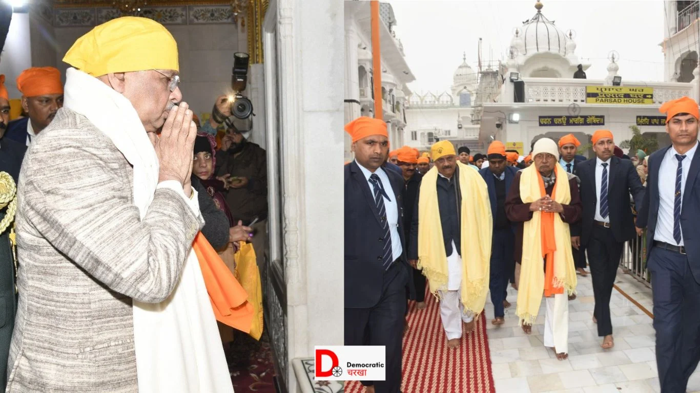 सीएम का गुरुद्वारे में प्रबंधन कमेटी के लोगों ने अंग वस्त्र, सरोपा, प्रतीक चिन्ह, तलवार और फूलों का गुच्छा देकर उनका स्वागत किया.