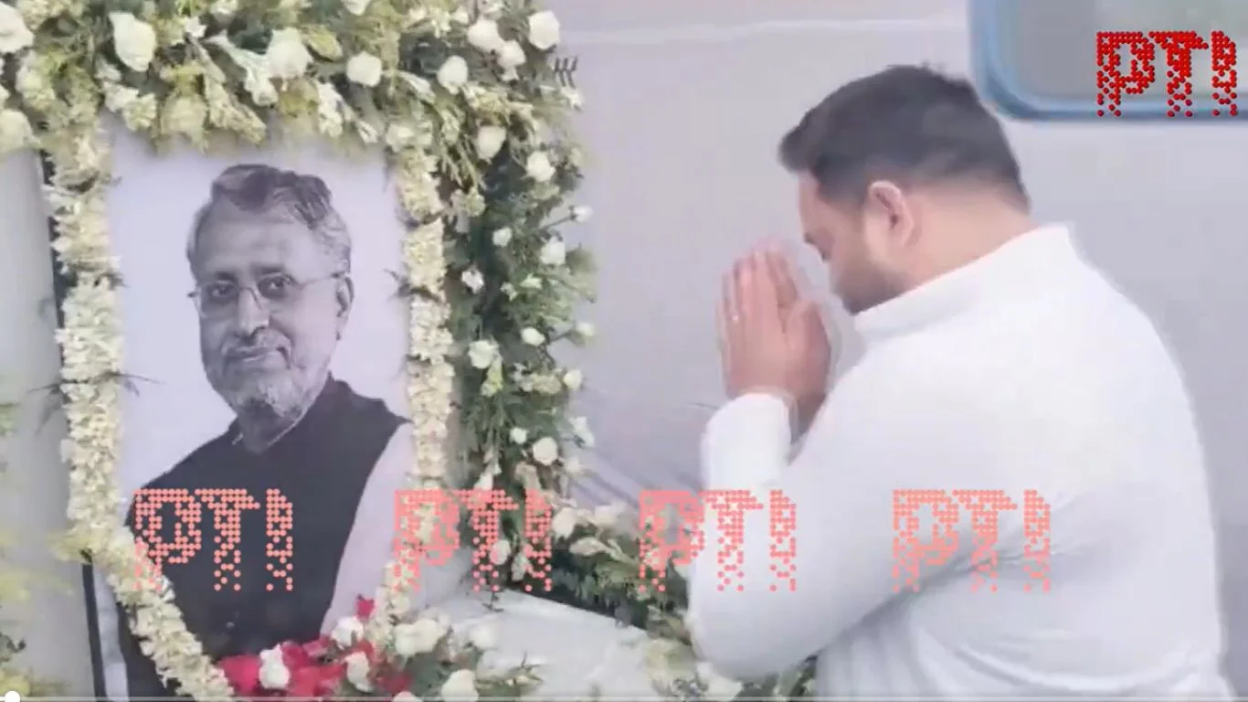 सुशील मोदी को श्रद्धांजलि देने पहुंचे तेजस्वी यादव, कहा- सुशील मोदी ने BJP को बनाया