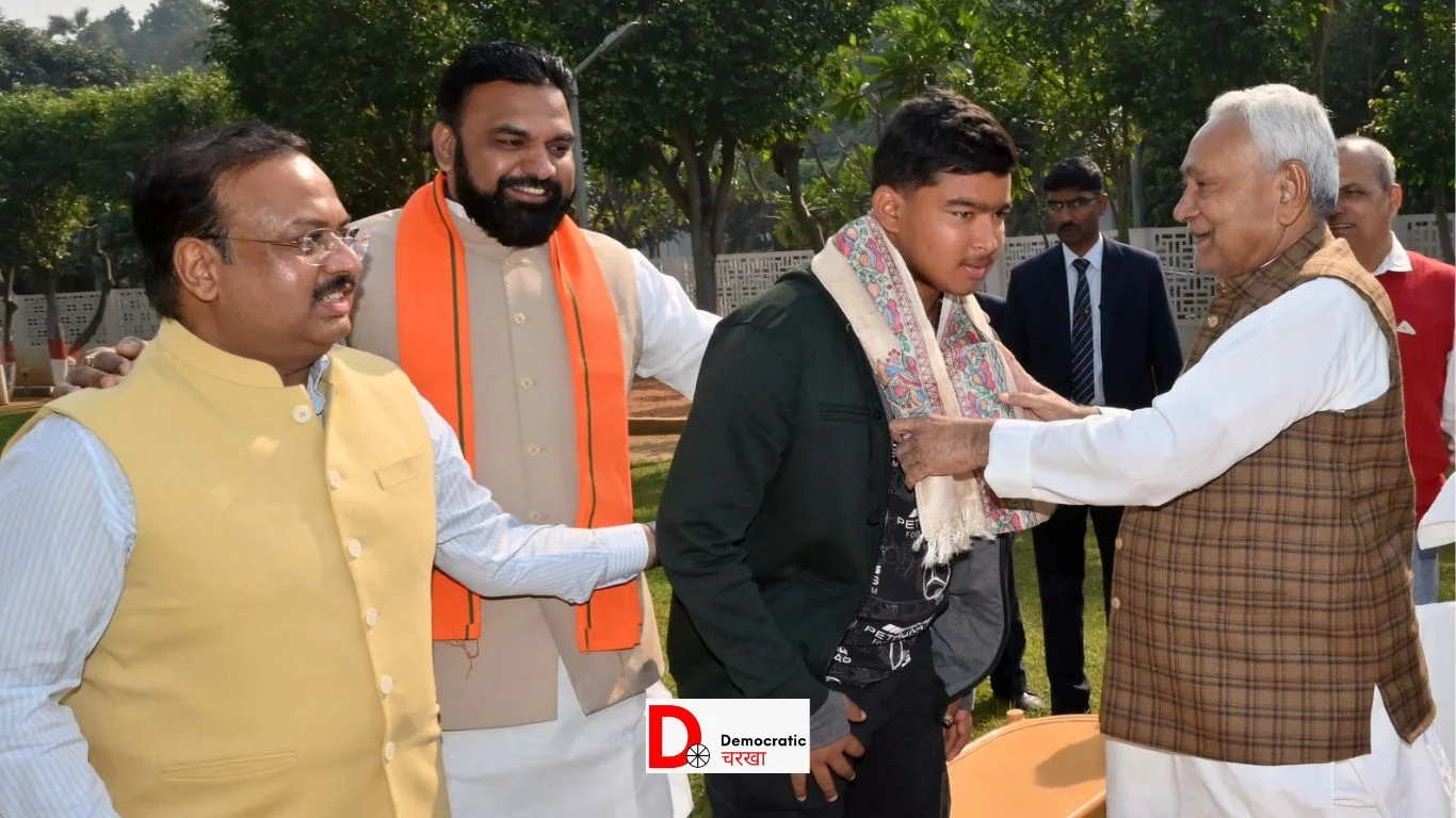 बिहार के युवा बल्लेबाज वैभव सूर्यवंशी का हाल में ही आईपीएल में सिलेक्शन हुआ है. आईपीएल में 1.10 करोड़ की बोली लगने के बाद वैभव पूरे बिहार समेत भारत में छाए हुए हैं. उभरते क्रिकेटर सूर्यवंशी बुधवार को अपने पिता संजीव सूर्यवंशी के साथ मुख्यमंत्री नीतीश कुमार से मिलने उनके आधिकारिक आवास पहुंचे.